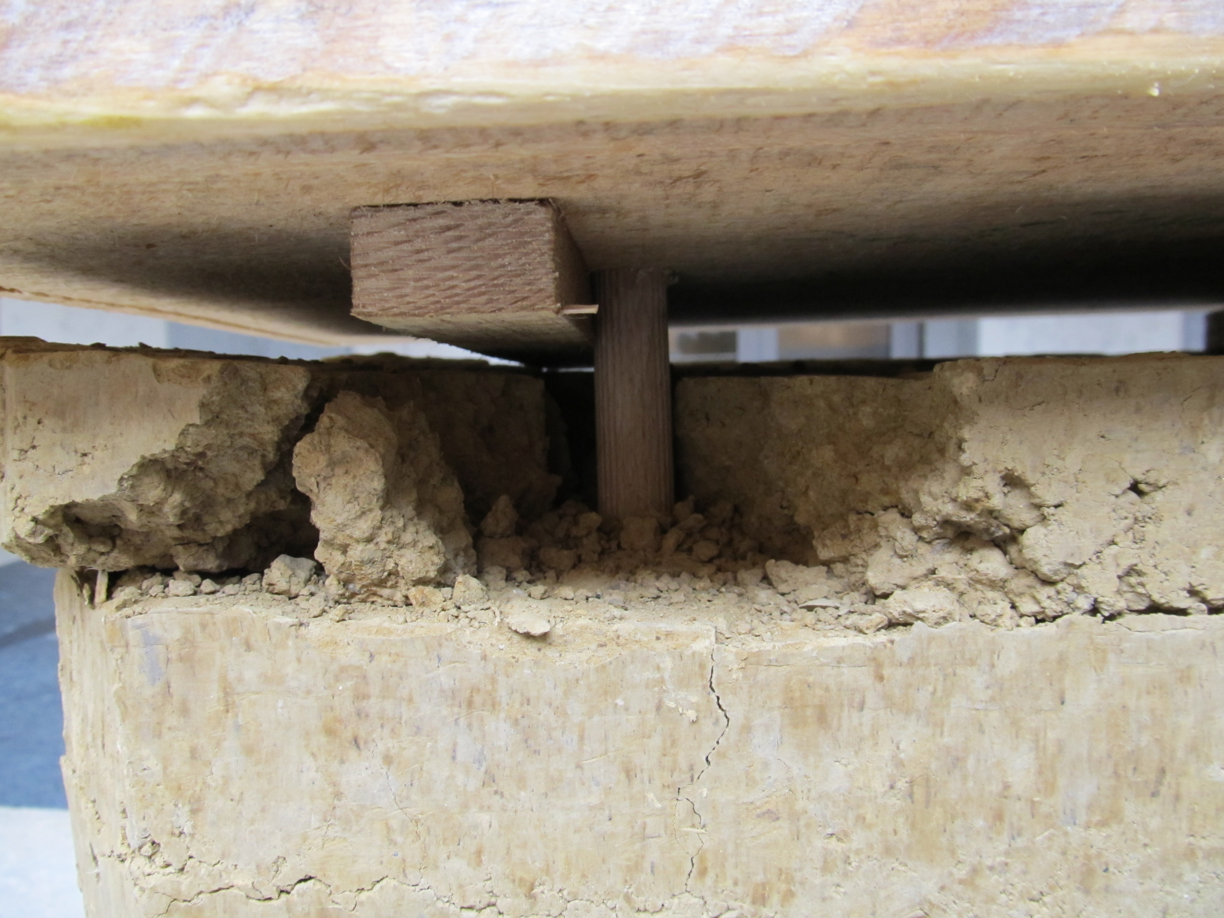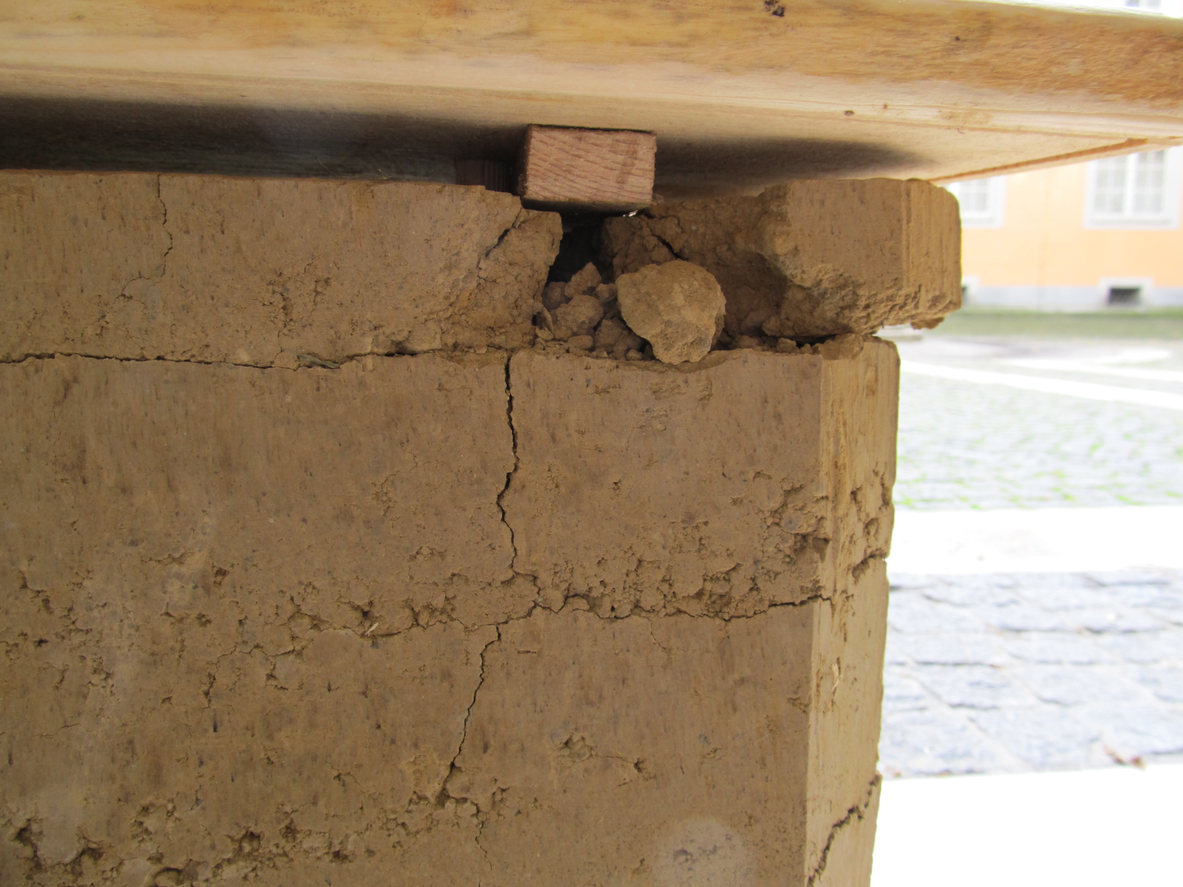 -Der Lehm wurde zu trocken verarbeitet (wäre nicht aufgefallen, hätten wir die Bank nicht sobald durch den Transport erschüttert) Folgen: Material verbindet sich nicht so gut -ist porös