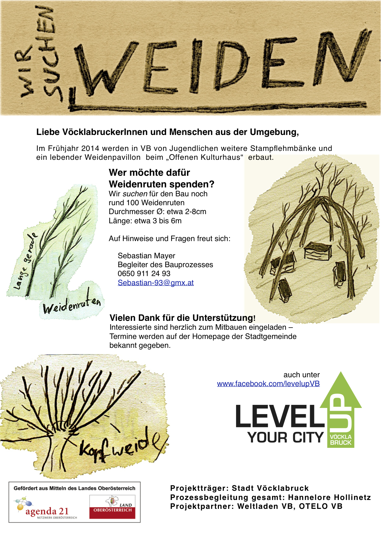 Wir suchen für den Bau noch rund 100 Weidenruten Durchmesser Ø: etwa 2-8cm Länge: etwa 3 bis 6m