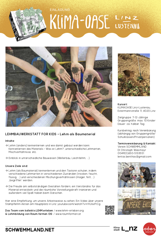 Außerdem bieten wir auf Nachfrage auch eine Lehmbauwerkstatt für Kinder an. Hier steht das Kennenlernen des Materials und viel Spaß im Vordergrund!