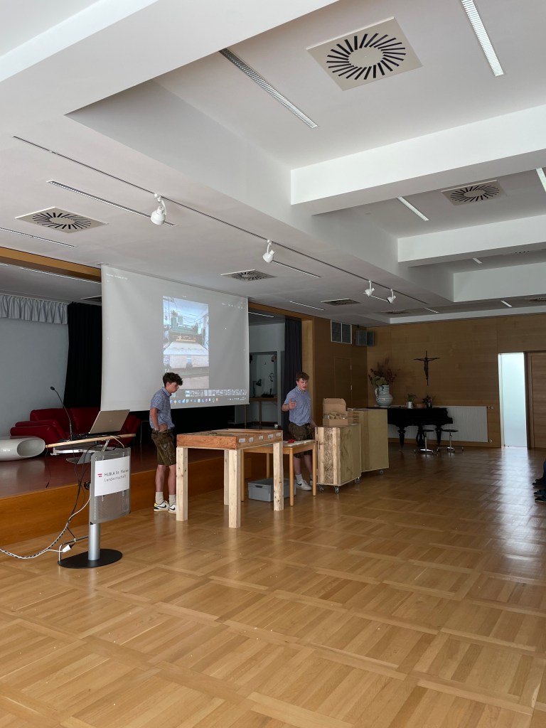 Schnell war in der Früh mit Hilfe der Schüler der HLBLA aufgebaut. Alles war bereit für unsere Helferleins der Volksschule St. Florian. Die kamen dann auch, zwar etwas später als gedacht, aber kein Problem, so wurde die Einführung zu Lehmbau kurz und knackig gehalten.
