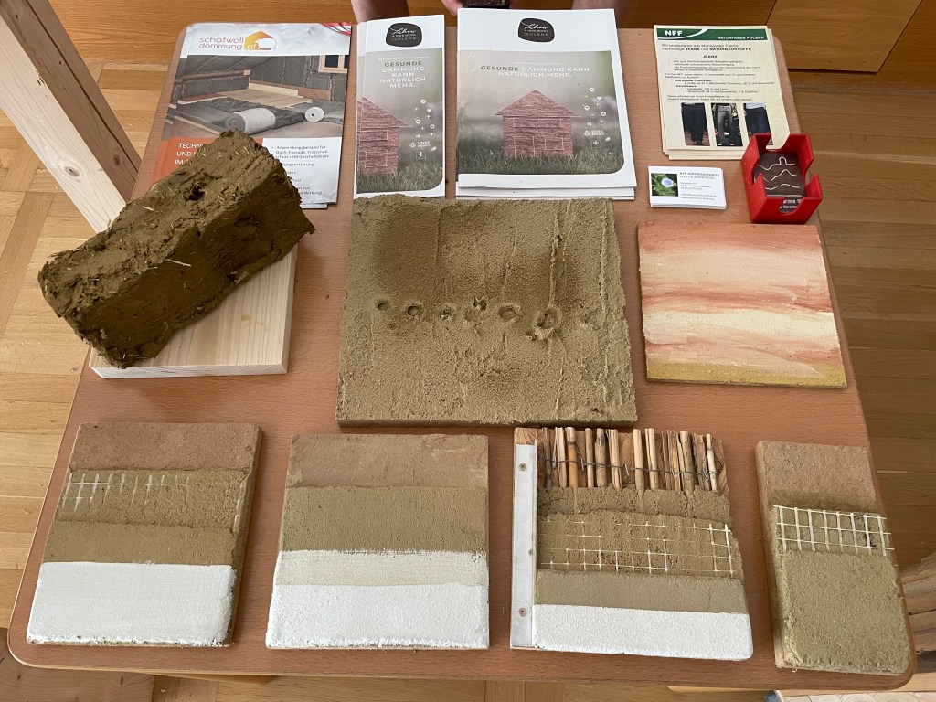 Am Nachmittag durfte Iris dem Stand zu „nachhaltigen Dämmstoffen und Lehmbau“ als Expertin beiwohnen, um Fragen rund um „Lehm als Baumaterial“ zu beantworten und die Ergebnisse der Vormittags zu präsentieren. Tatsächlich gab es einige Fragen und auch Interesse, besonders bei alten Bauernhöfen Lehm in der Sanierung einzusetzen. Wir sind gespannt und würden uns natürlich sehr freuen, wenn eines der besprochenen Projekte wirklich mit Lehm umgesetzt wird.
