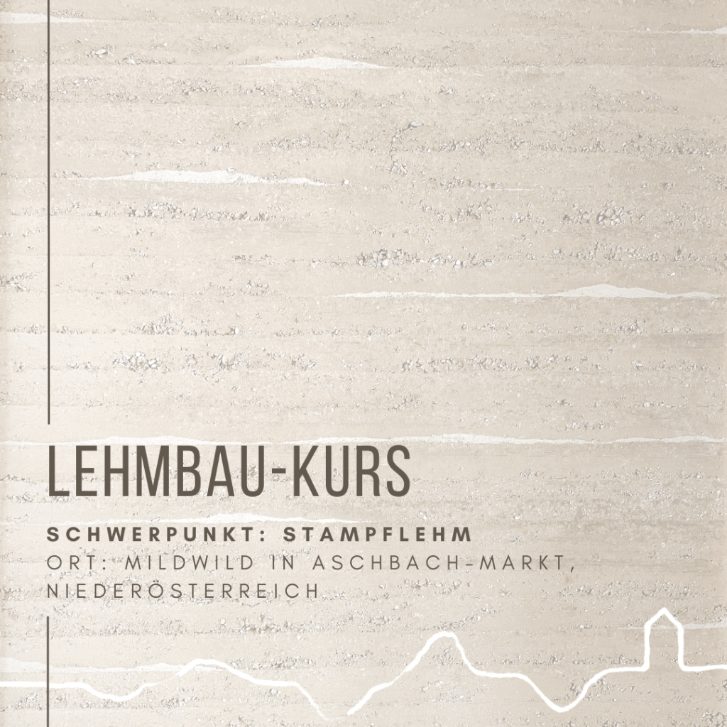 Als Einstieg in diesen Kurs wird als Erstes tief ins Material eingetaucht – seid gespannt! 😉 Im weiteren Verlauf werden Einsatzmöglichkeiten und Zusammensetzungen von Stampflehm besprochen und auch angewandt. Es gibt eine Einführung in den Schalungsbau und die Umsetzung einer gestampften Sitzmöglichkeit ist geplant und/oder aber die Ausführung eines Stampflehmbodens auf einer Baustelle. Außerdem wird es Zeit geben, um Experimente mit dem Material durchzuführen. Je nach Anmeldungen!