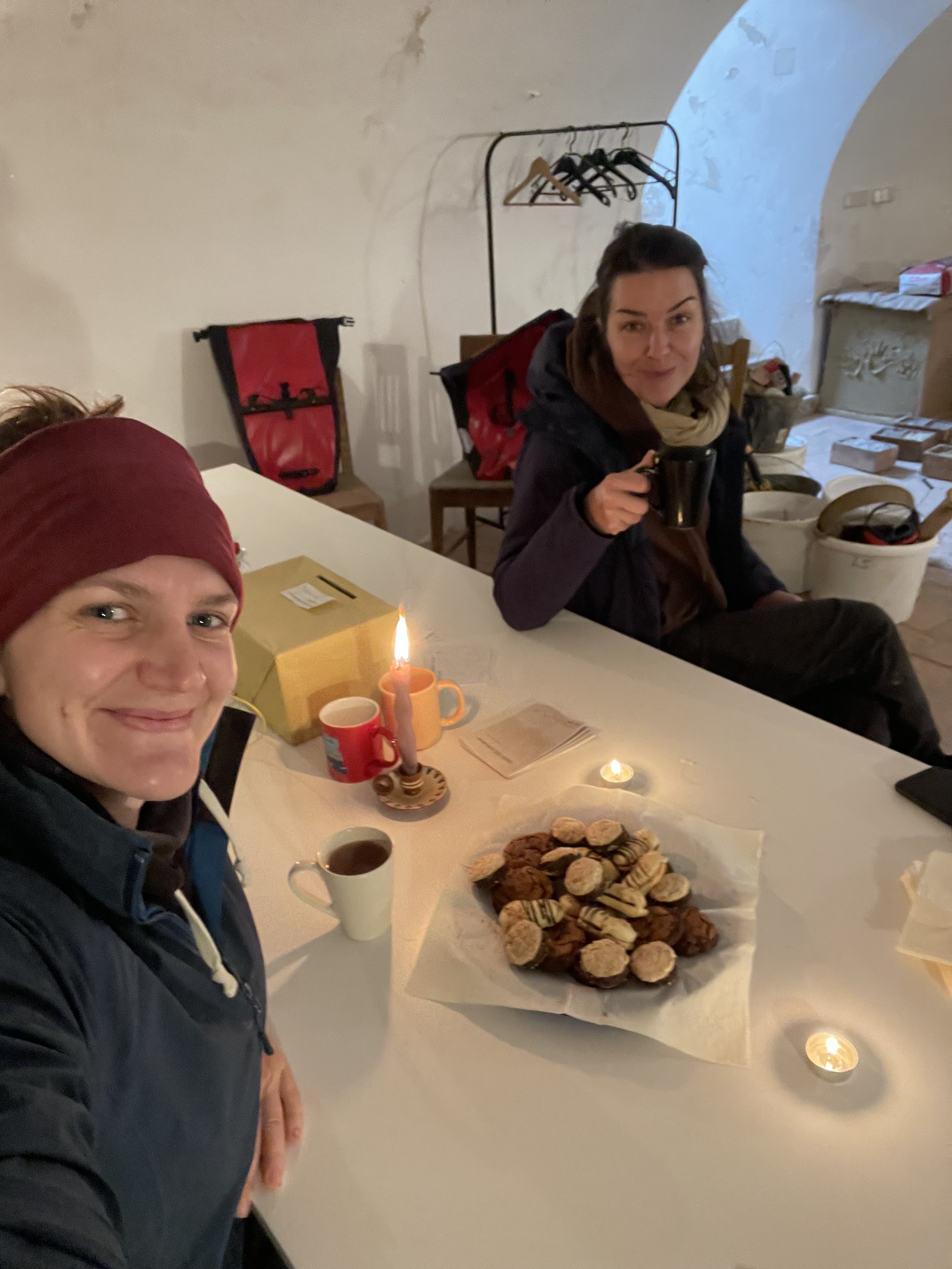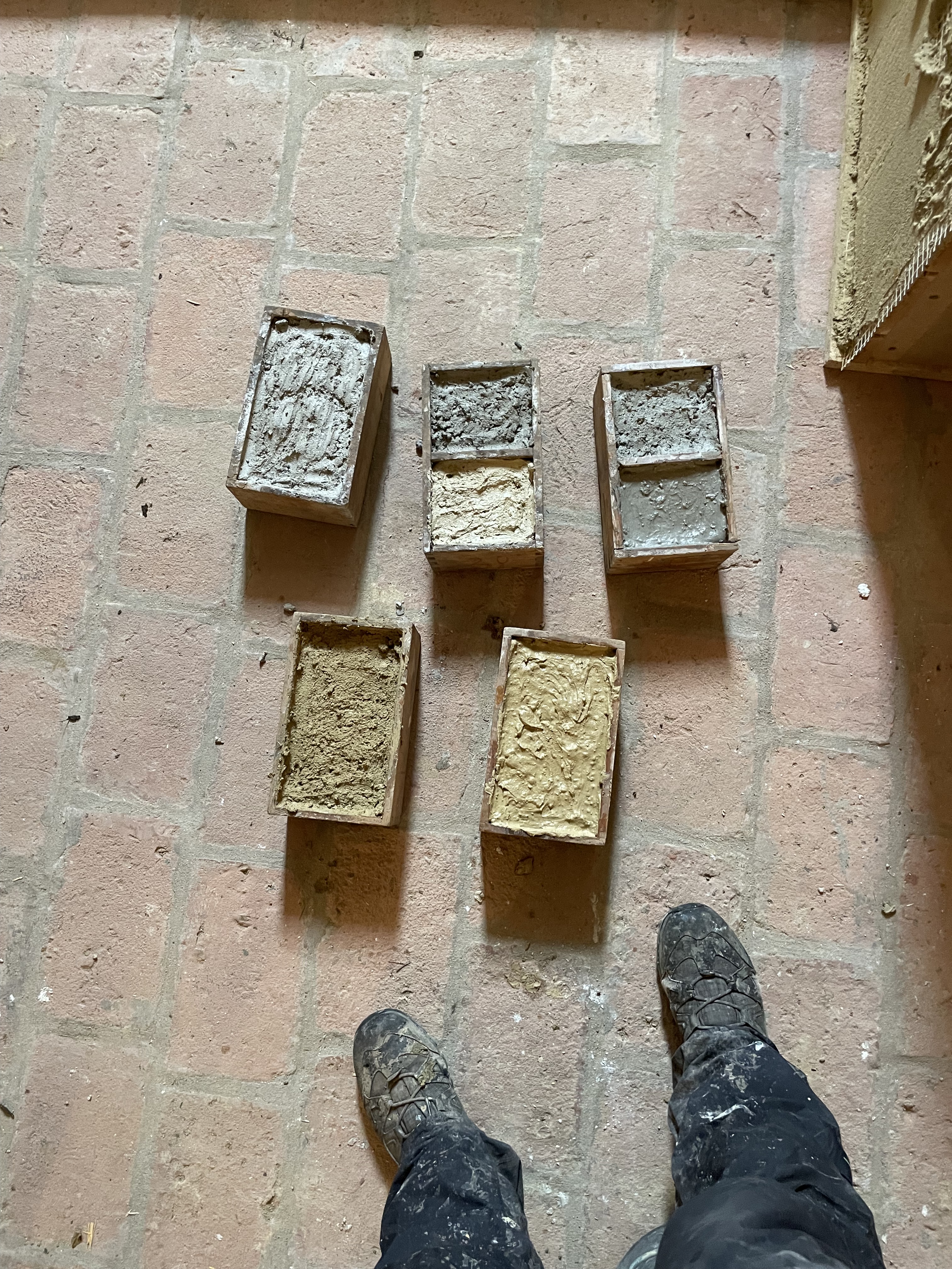 War klein und fein, sehr gemütlich und produktiv. Christine Pavlic – eine Künstlerin, die meist interdisziplinär und ortsbezogen an der Schnittstelle zwischen Kunst, Design und sozialem Experiment arbeitet – war zu Besuch und wir haben – interdisziplinär! 😉 – Insektenhotels für den „Turm der Artenvielfalt“ gebaut, der auf der Klimaachse in Linz aufgestellt wird. Nach getaner Arbeit haben wir gemeinsam die Kekse und den Punsch genossen und nachdem sie gefahren ist, habe ich noch an meinen Putz- und Stampflehmmustern weitergearbeitet und das Jahr revue passieren lassen. Dabei heraus kam …