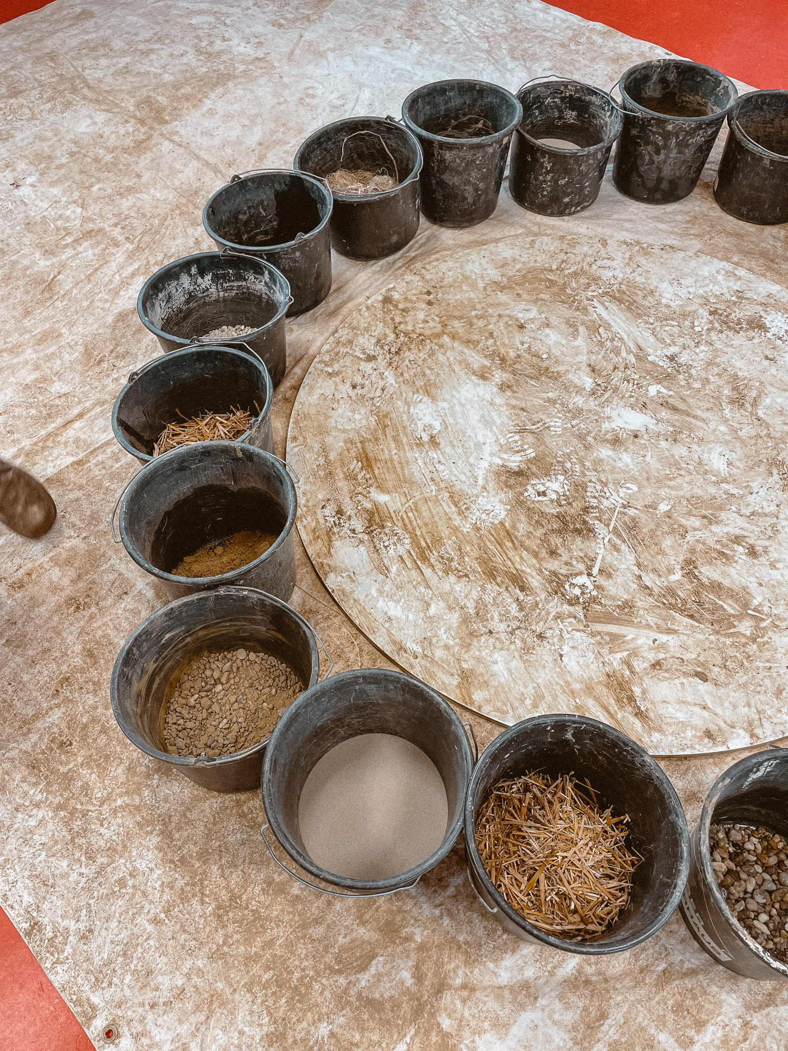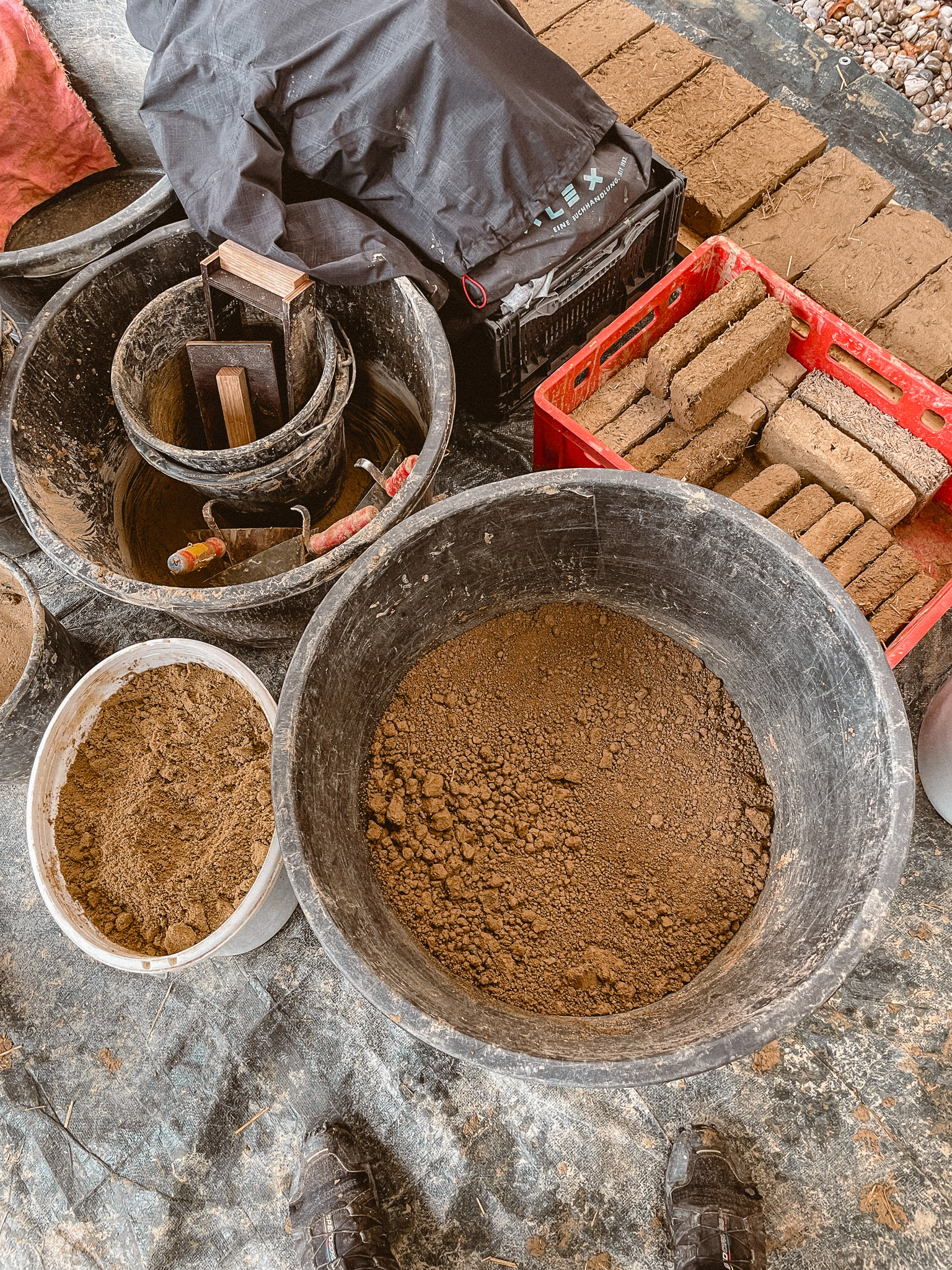 Jedenfalls haben wir es uns auch dieses Jahr zum Ziel gesetzt unsere jungen Lehmbauer*innen zum Nachdenken zu bewegen, um mal über „konventionelle“ Baumaterialien hinauszusehen. Neben „Lehm mit allen Sinnen erleben“, gab’s auch eine kurze Theorie, was Lehm eigentlich ist und was damit so alles gebaut werden kann. Der Fokus lag natürlich auf dem Tun & Erleben: Es wurden Lehmziegel selbst produziert, Lehmputz auf Putzträger aufgeputzt und wir haben uns auch in Achtsamkeit geübt, indem wir „Dorodango“ Kugeln hergestellt haben. Wisst ihr was das ist? Nein?! Dorodango kommt aus dem japanischen und bedeutet so viel wie „Schlammkugel“. Zuerst wird mit der Hand grob eine Kugel geformt und diese wird dann !im richtigen Feuchtigkeitszustand! über den Rand einer kleinen Tasse bewegt. So wird der Lehm poliert und es entsteht eine glänzende, wunderschöne Oberfläche.